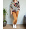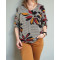 Blouse à grosses feuilles bordeaux moutardes noires dos noué