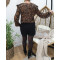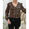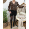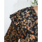 blouse noire satinée petites fleurs orangées liserés dorés