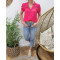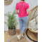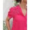 Chemisier femme manches courtes dentelle rose fuchsia Sérana