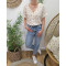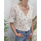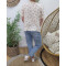 Blouse en gaze de coton écru fleurs roses