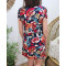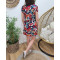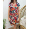 Robe femme marine fleurs rouges et jaunes Lolanda