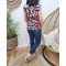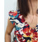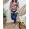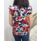 Blouse femme marine fleurs rouges et jaunes Lolanda