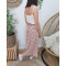 Jupe femme mi-longue boutonnée petites fleurs rouges cerises et vertes