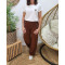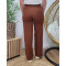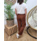 Pantalon femme marron chocolat fluide taille haute boutonné Dina