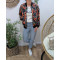 Bombers femme noir feuillages gris corail beiges