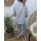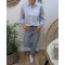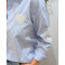 Chemisier femme rayé bleu ciel et blanc broderies coeurs