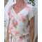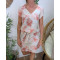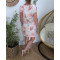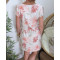 Robe femme droite écrue feuillages roses et taupes Ombelline