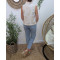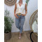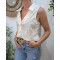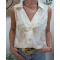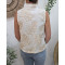 Chemisier femme écru sans manches broderies beiges fil argenté