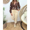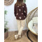 Chemisier femme marron broderies beiges Aléthéa