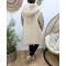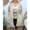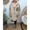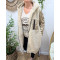 Manteau long femme bouclettes beige manches et poche matelassées dorées