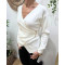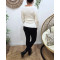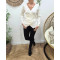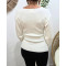 Pull fin femme asymétrique écru broche dorée