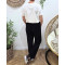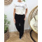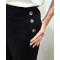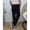Pantalon large velours femme taille haute boutonné noir