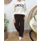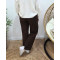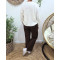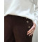 Pantalon large velours femme taille haute boutonné marron