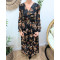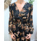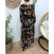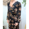 Robe longue femme noire fleurs terracotta et dorures Clara