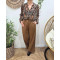Chemisier femme noir feuillages beiges et terracottas Calla