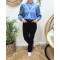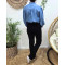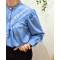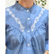Chemisier femme bleu jean fleurs brodées blanches