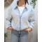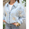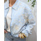 - Bombers femme rayé à broderies beige et bleu ciel Adélija