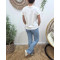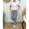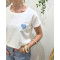 - T-shirt femme blanc coeur brodé bleu fleurs blanches et roses