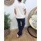 - T-shirt femme blanc coeur brodé rouge fleurs multicolores