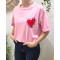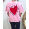 - T-Shirt femme rose coeur rouge Love is a kiss