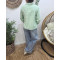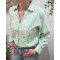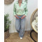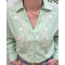 - Chemisier femme rayé vert et blanc broderies feuillages