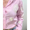 - Chemisier femme rayé rose et blanc broderies fleurs