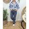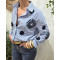 - Chemisier femme rayé bleu marine et blanc broderies fleurs