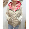 - Doudoune femme sans manches dorée et motifs fuchsias orangés réversible