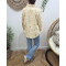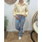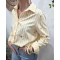 - Chemisier femme rayé jaune et écru coeurs brodés dorés