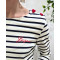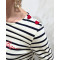- T-shirt marinière femme manches longues boutons coeurs broderie bisous rouge