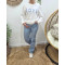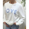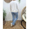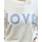 - Sweat femme blanc broderie LOVE vichy bleu ciel