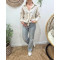 - Chemise femme rayée beige et taupe broderie Strong Girls rouge