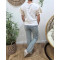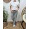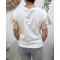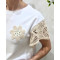 - T-Shirt femme blanc manches et fleur brodées beiges
