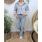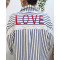 Chemise femme rayée marine et blanche broderies fleuries et LOVE rouge