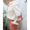 Chemisier femme lin beige broderies manches terracotta