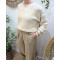 - Pull femme beige manches brodées fleuries blanches Nerea