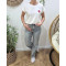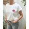 - T-shirt femme blanc fleur rose dorée brodée