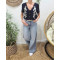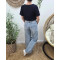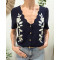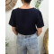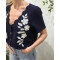 - Blouse femme manches courtes marine broderies fleurs blanches