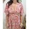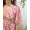 Robe longue femme écrue fleurs roses rouges Noémie