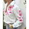 Chemisier femme blanc broderies fleuries roses Xentha