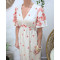 Robe longue femme beige broderies rouges Sidera