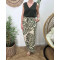 Pantalon femme fluide écru et vert Esra
