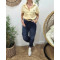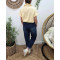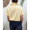 Chemisier femme rayé jaune et écru manches courtes coeur brodé doré