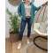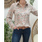 Chemisier beige à fleurs corail et bleues