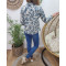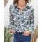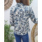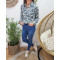 Chemisier écru feuillage bleu