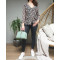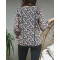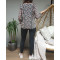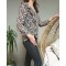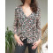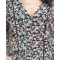 Chemisier femme à boutons et volants noir à fleurs roses bleues vertes