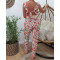 Combinaison pantalon blanche imprimé floral rose vert et gris