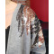 Gilet long gris épaules ailes en sequins cuivrées et argent