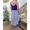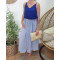 Jupe femme mi-longue boutonnée bleu roi petites fleurs blanches