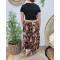 Jupe femme plissée grande taille motifs noirs et camel Balou
